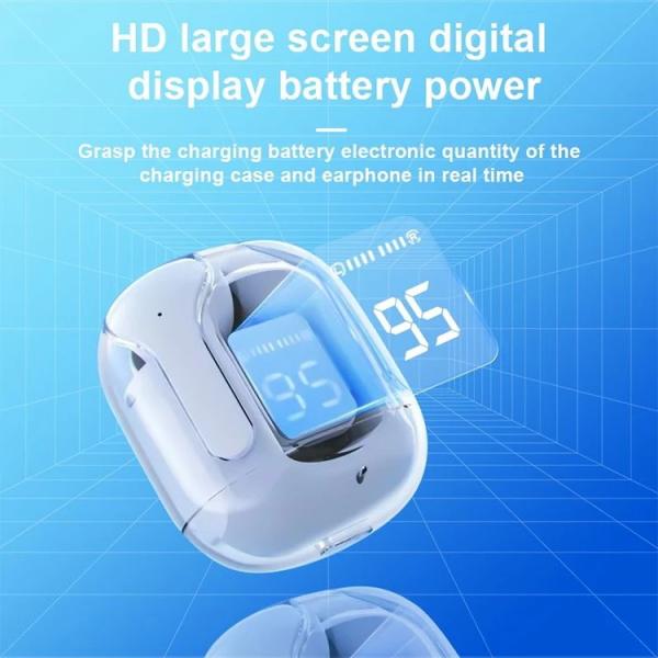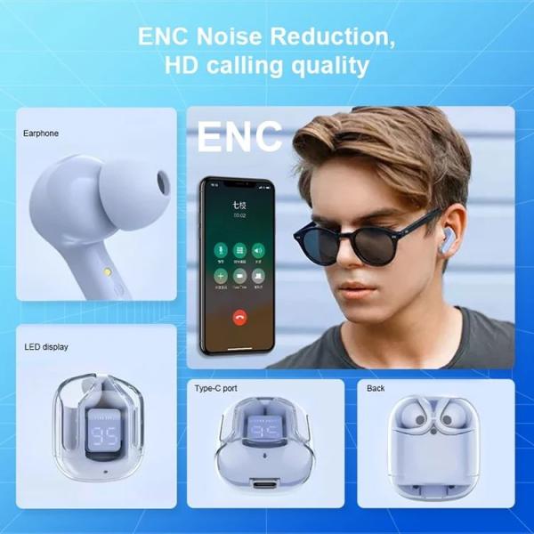 * Auriculares inalámbricos por Bluetooth* Reducción de ruido* Auricular con micrófono y pantalla Led* Puede controlar fácilmente llamadas, pausar, reproducir música, etc. * Emparejamiento por medio de Bluetooth* Carga rápida por medio de cable de datos tipo C* Estuche pantalla Led indicadora de carga * Tiempo de uso: 1-5 a 4Hrs* Tiempo de carga: 2-4Hrrs* Colores: Celeste, Blanco, Morado, Negro